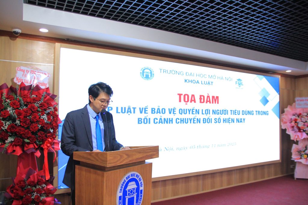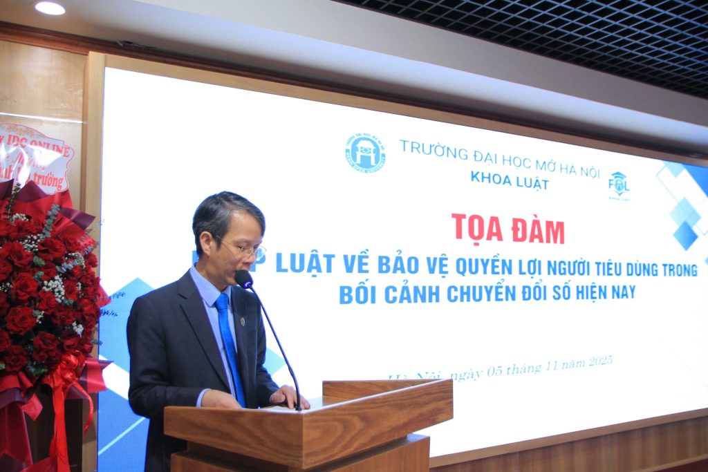 Sáng ngày 05/11/2025, tại Hội trường A2, Trường Đại học Mở Hà Nội, Khoa Luật đã tổ chức thành công Tọa đàm khoa học với chủ đề “Pháp luật về bảo vệ quyền lợi người tiêu dùng trong bối cảnh chuyển đổi số hiện nay”.